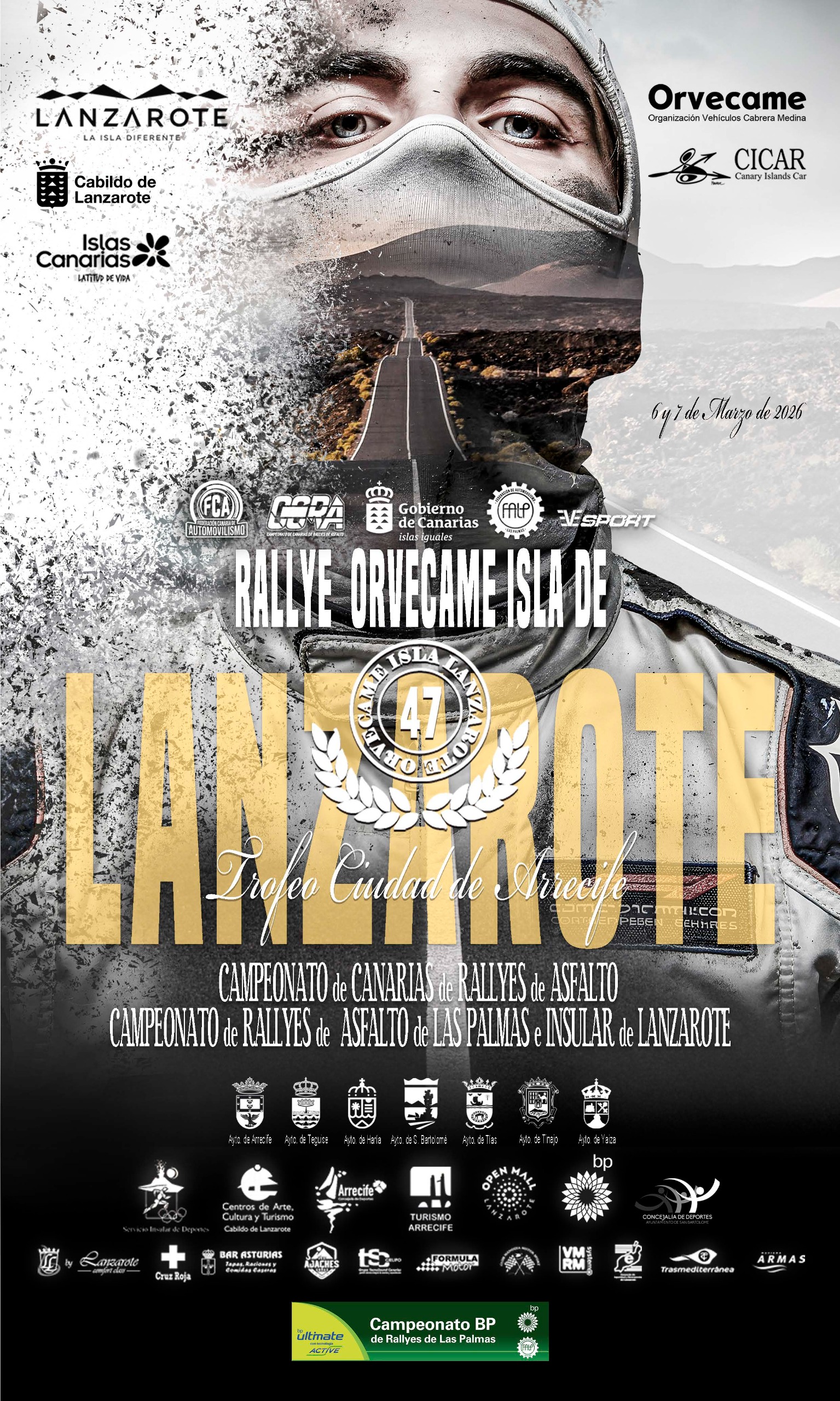 El 47º Rallye Orvecame Isla de Lanzarote-Trofeo Ciudad de Arrecife, se disputa este viernes y sábado como primera cita del CCRA y del Campeonato bp de Las Palmas 2026, además de segunda prueba del Campeonato Insular de la isla de los volcanes, con un nivel de aspirantes a la victoria y vehículos tipo Rally2, que junto a los GTR animarán mucho el desarrollo de la prueba.